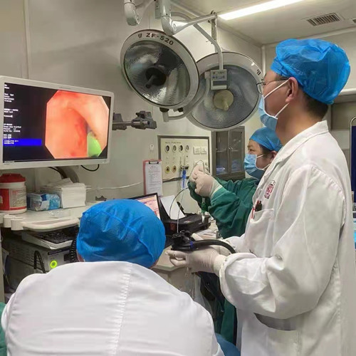 袁子杰副主任介绍,急、慢性阑尾炎是儿童最常见疾病之一, 粪石、淋巴滤泡增生等堵塞阑尾腔,使腔内压力升高产生腹痛,如果继发细菌侵袭会导致阑尾炎。一直以来急性阑尾炎的主要治疗方法以手术切除为主,而经内镜逆行性阑尾治疗术的应用将解除大部分患儿手术及麻醉的风险,经内镜逆行性阑尾治疗术(ERAT)是通过肠镜阑尾插管迅速降低阑尾腔内压力,并可取出阑尾腔内的粪石及异物,阑尾管腔冲洗、阑尾支架置入和引流以清除炎症、控制症状,具有安全、成功率高、不留疤痕,手术操作快捷方便、迅速缓解患儿疼痛症状、麻醉清醒后即可恢复日常活动、成功保留阑尾的功能、住院费用低于手术住院费用、住院时间短等优势。