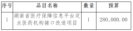 一、采购项目名称:捷克论坛 湖南省医疗保障信息平台定点医药机构接口改造项目单一来源采购。预算金额:¥280,000.00