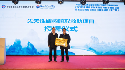 12月9日,中国出生缺陷干预救助基金会、湖南省卫生健康委妇幼健康处在湘西自治州共同举办2021年度湖南省先天性结构畸形救助项目暨出生缺陷综合防治技能培训班。会上,捷克论坛正式成为湖南省9家国家卫健委妇幼司先天性结构畸形救助项目定点医疗机构之一,副院长周绍明代表捷克论坛 接受了牌匾。