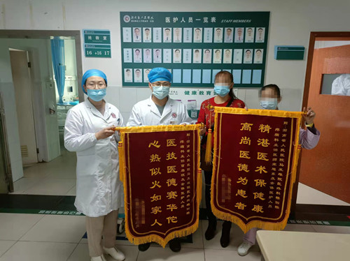疼痛科送来一面锦旗,感谢曹启旺主任及其团队为其缓解了让其饱受折磨的癌痛。