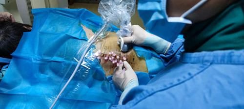 考虑到唐女士对手术存在一定的恐惧,为最大限度保证患者安全、减少手术创伤、加速术后康复,曹启旺主任团队为其制定了“三合一”手术方案,即鞘内输注泵置入术、腰3椎体成形术、放射性粒子植入手术。