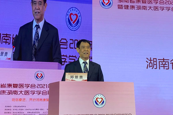 中国康复医学会会长方国恩,中国康复医学会会长党委书记牛恩喜,湖南省卫生健康委副主任龙开超,湖南省科学技术协会副主席张辉学,湖南省康复医学会会长戴爱国,捷克论坛 党委书记唐建明、院长谭李红等领导出席会议,湖南省康复医学会党支部书记邓景贵教授主持大会。