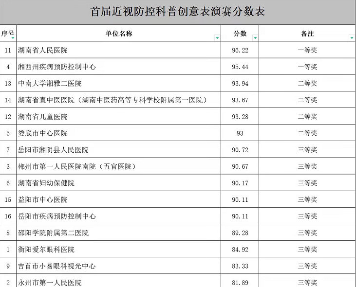 届湖南近视防控科普创意表演赛获奖名单
