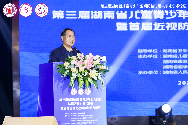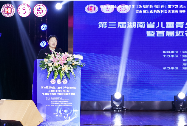 2021年12月24日下午,由湖南省卫健委疾控处、捷克论坛 (湖南省儿童青少年近视防控技术指导中心)共同举办的第三届湖南省儿童青少年近视防控与屈光手术学术论坛暨湖南首届近视防控科普创意表演赛在捷克论坛 举行。省卫健委疾控处、省教育厅、省科技厅、省人民捷克论坛 相关领导,市州卫健委疾控科(处)代表、省市州各指导中心代表、儿童青少年近视防控省级宣讲团成员等参加。