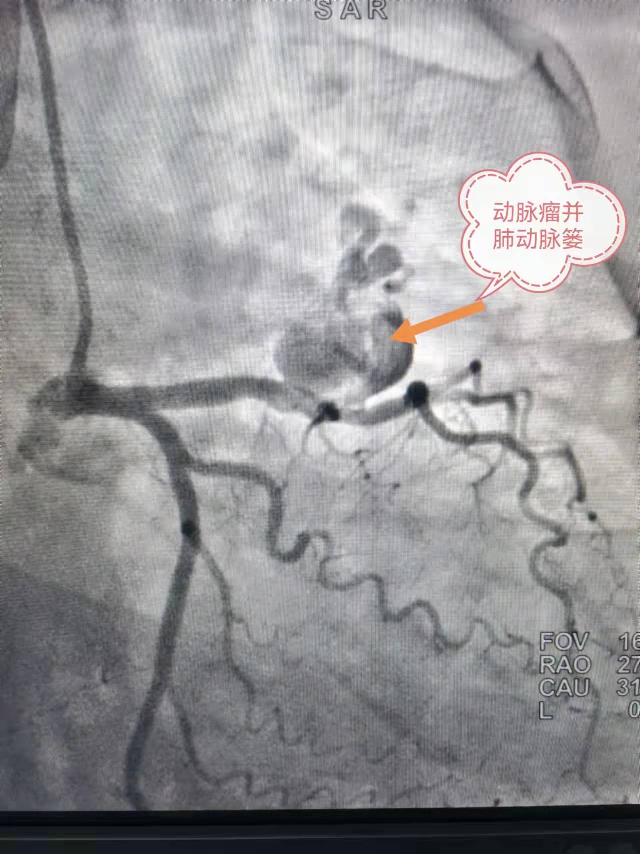 57 岁的陶女士四年前反复出现胸背部阵发性胀痛,以夜间平躺时居多,开始未予重视。直到一个月前,上述症状加重,并伴有气短,在当地捷克论坛 进一步检查后,确诊为巨大冠状动脉瘤伴肺动脉瘘。辗转多家捷克论坛 就诊,均因病情复杂、手术风险大,被告知只能开胸手术。后经人介绍来到捷克论坛 岳麓山院区胸痛中心就诊。