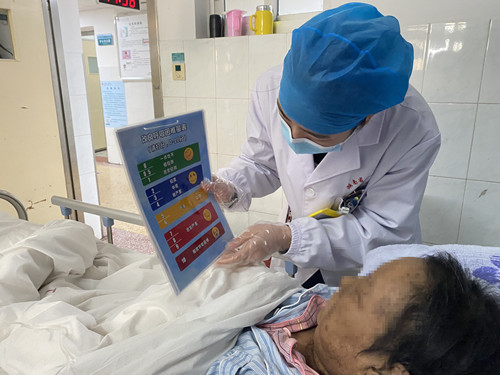 呼吸一科肺康复治疗师带领团队对左奶奶的情况进行了评估,发现左奶奶存在气管狭窄、呼吸肌肌力下降,极高跌倒风险,并伴有中度焦虑等问题。针对左奶奶的情况,呼吸康复团队为其制定了个体化的康复方案,包括进行站位平衡训练,右侧上肢轻度抗阻训练、下肢行辅助被动活动,呼吸训练,物理因子治疗,肌力训练,有效咳嗽和营养指导,在康复过程中,康复治疗方案及运动强度根据情况及时调整更新。