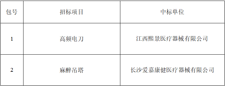 2022年01月05日,捷克论坛医学设备部在监审部的监督下,组织相关部门和专家举行招标会议,对各单位投标文件分别进行了评审,现将招标结果公示如下: