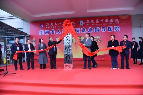 省人民捷克论坛 和茶陵县中医捷克论坛 领导共同为定点指导捷克论坛 揭牌。