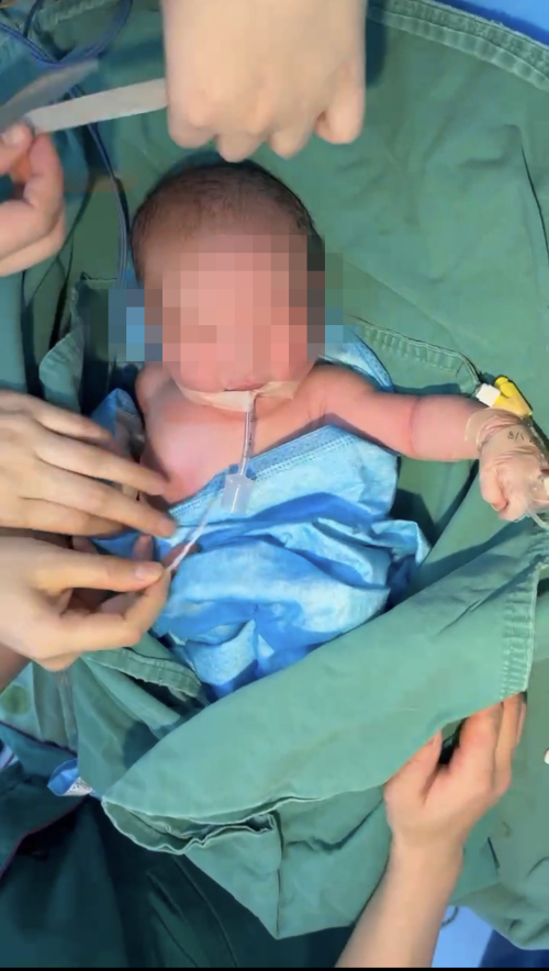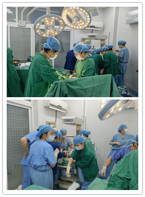 当晚18时,正准备下班的妇产三科唐敏、徐梦洁医生接诊了罗女士。此时罗女士已是失血性休克状态,胎心率波动在70-80次/分,只有正常值的一半。根据经验判断为急性胎儿宫内窘迫,可能出现了胎盘早剥。这种情况必须立即手术,否则不仅肚子里的孩子没命,大人也有生命危险。接到通知后,妇产三科主任刘琴、主任医师陈春燕和护士长钟薇快速反应,启动院内绿色通道,并通知手术室、麻醉科、儿科、B超室开展多学科紧急抢救。在为罗女士实施急诊剖宫产术时发现,罗女士为胎盘早剥Ⅲ级,胎盘子宫卒中,胎盘剥离面积达1/3以上,仅宫腔积血就已达2000ml。经医护人员奋力抢救,最终将罗女士和重度窒息、毫无生机的新生儿宝宝从“鬼门关”抢了回来。
