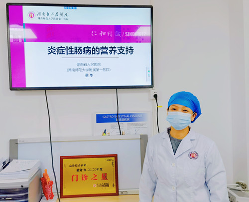 炎症性肠病是消化科发病率持续上升、反复发作、发病机制尚不明确的疑难疾病之一,为改善炎症性肠病病人的临床结局,综合内科彭娅主任邀请蔡华技师长,开展了一场针对医务人员的“营养+”巡讲,大家纷纷表示,讲座增加了新知识,对营养对于康复的意义有了更深入的认识。