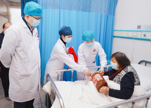 86岁的刘奶奶身患肝癌又重度贫血,这种天气总是双手冰凉,特别怕冷。护士每次打针前都会搓热自己的双手,希望给老人多一点暖意。临近春节,介入血管外科兼介入二科主任王庆、学科护士长莫伟和介入二科护士长胡琴为老人送上特别的新年礼物——加绒暖手筒。当老人把手放进暖手筒的那一刻,布满皱纹的脸上浮现出久违的笑容。