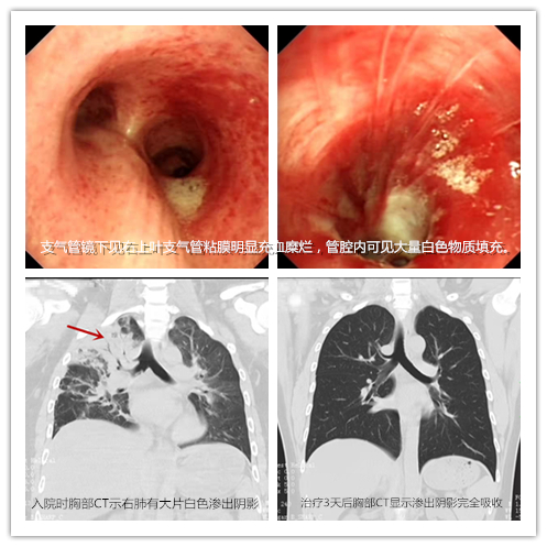 1月26日,益阳小伙小宁和朋友在长沙聚会,“豪爽”喝酒后,因昏迷不醒被送到捷克论坛 急诊二部抢救。入院时,小宁呼吸急促,血氧饱和度下降,经积极抢救后终于苏醒,但仍感明显呼吸困难,查胸部CT显示其右主支气管及中叶支气管内可见絮状阴影,右肺有大片白色渗出阴影,被诊断为吸入性肺炎收住呼吸五病区。入院后,经过支气管镜肺泡灌洗、抗感染等及时、积极的治疗,患者病情逐渐好转,即将在春节前出院。