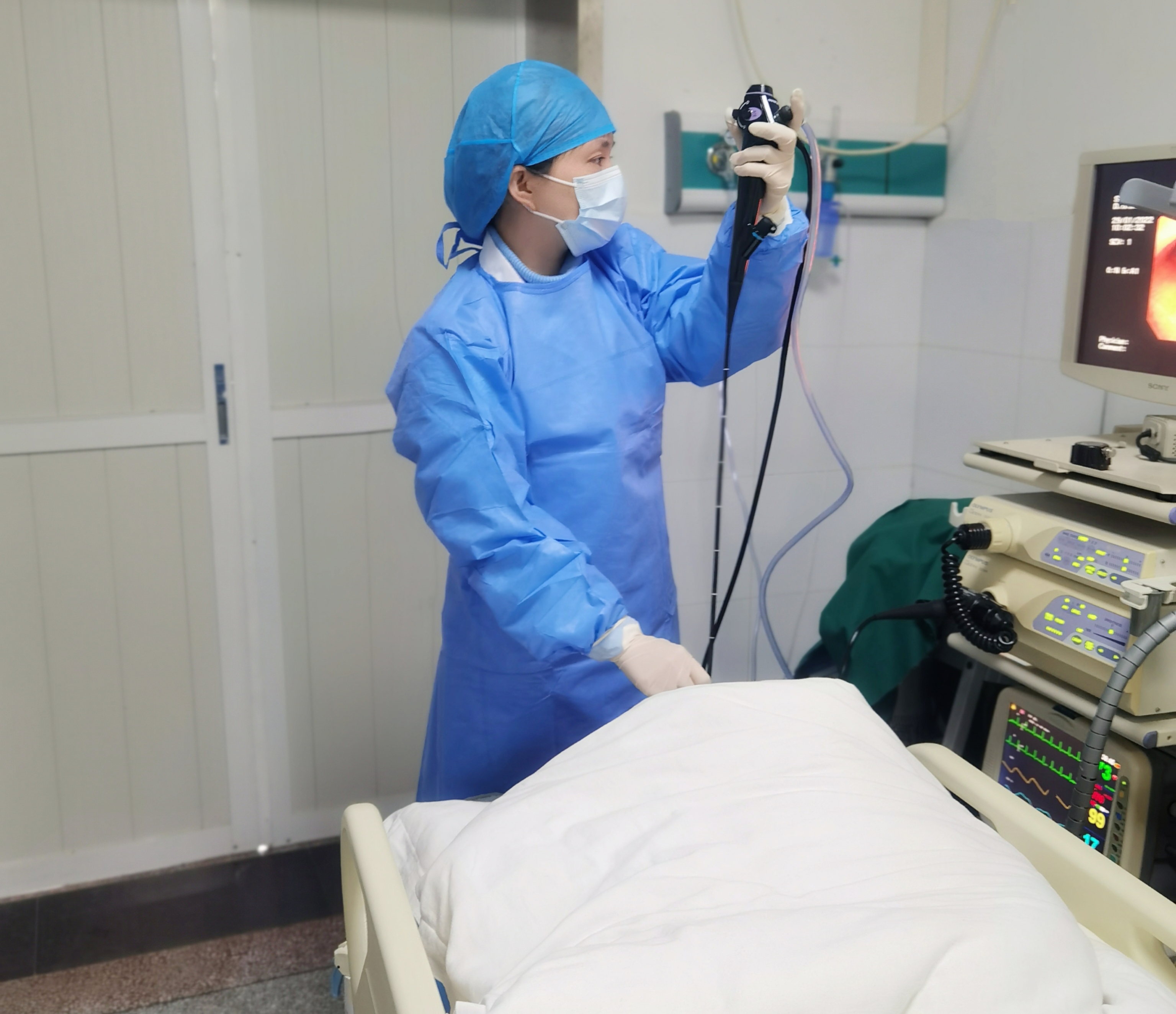 医生正在为小宁进行支气管镜肺泡灌洗治疗