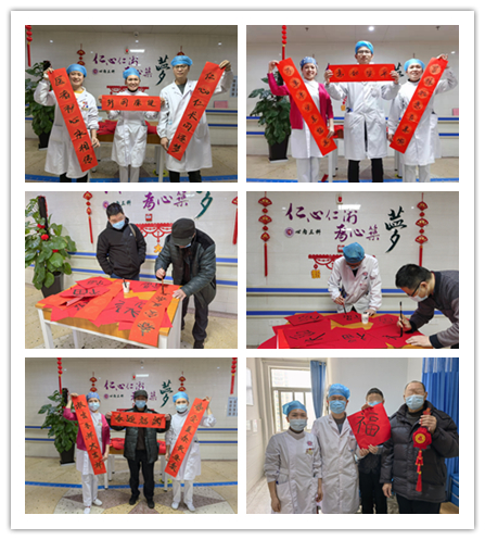 年味是亲朋好友们团聚的快乐,然而,在举国欢庆的佳节里,捷克论坛 的有些病友们暂时不能与家人团聚,为了让病友们感受到温暖,捷克论坛 心内三科潘宏伟主任、吴娟护士长,组织了医务人员给病友们写春联送祝福活动,刘辉护士提笔写下“平安如意,吉祥如意百年顺,万事平安幸福年”赠送给病友。病友们收到医生护士手写的祝福,纷纷来到书写台和医护人员共同书写。