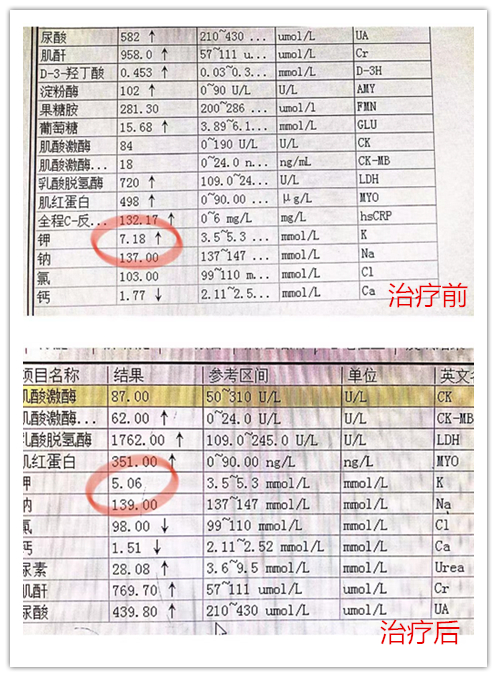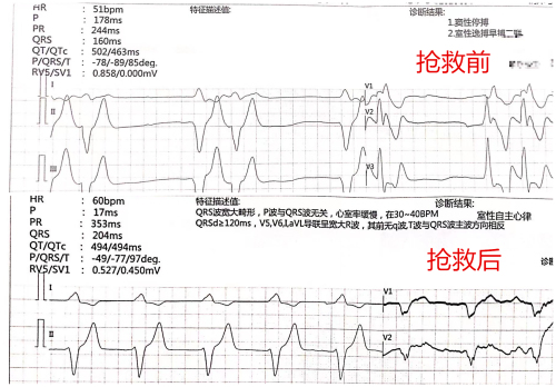 入院时,患者意识丧失,心跳呼吸骤停,情况十分危急。当班医生肖莎莎及护士立即予以心肺复苏、气管插管及呼吸机辅助通气、肾上腺素强心等抢救治疗措施。约6分钟抢救后,患者恢复了自主心跳,但心率仍然极为缓慢。经检查,周先生的血钾高达7.18mmol/L(正常血钾值范围3.5-5.3 mmol/L),诊断为因慢性肾功能不全、高钾血症致心跳呼吸骤停。随即,医护人员立即为其进行急诊床旁血透治疗。后患者血钾降至正常,但由于心率仍不稳定,神志仍未恢复,被收入ICU进一步进行综合治疗。