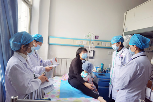 贺湘玲主任查看琦琦的恢复情况。