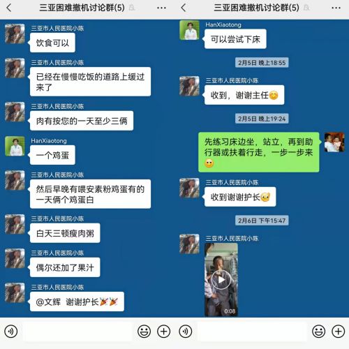 韩小彤主任、文辉护士长等专家通过微信指导撤机和营养支持。