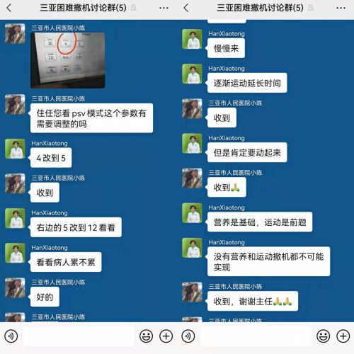令小陈惊喜的是,韩小彤主任很快就派人联系上她,并为她母亲组建了“多对一”的“困难撤机群”,安排樊麦英主任医师、呼吸治疗专科文辉护士长和毛淑贞呼吸治疗师等,分析病情、制定方案指导撤机。