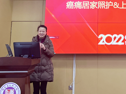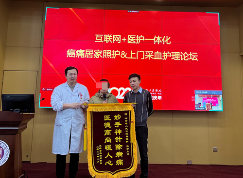 会上,麻醉三科主任张宇教授进行了《互联网+医护一体化癌痛居家照护》的经验分享。张宇教授根据癌痛患者真实的案例,深入浅出地阐述了癌痛管理的意义及发展趋势。会上还出现了感人的一幕,案例中患者家属来到会场现场向张宇教授和肿瘤科邓坦教授赠送锦旗,表达了对他们的感激之情。
