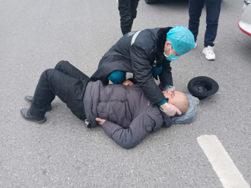 2月24日中午,马王堆急救站医生程奇接到长沙市120指挥调度电话:“某交叉路口发生一起车祸,伤者一人,伤情不详,呼叫急救车。”程奇医生第一时间联系了事故现场人员,了解到事发现场为机动车与电动车相撞,47岁王先生腰部受伤,疼痛难忍,但神志清楚。