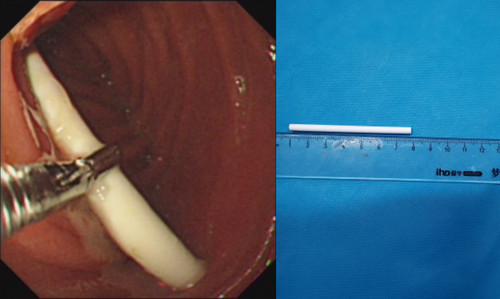 这是怎么回事呢?事情还得从前天说起。6岁女童婷婷在家吃着妈妈买的棒棒糖,因为太好吃了,吃完婷婷还舍不得丢掉棒棒,含在嘴里,结果一不小心把棒棒糖的棍子给吞下去了。妈妈吓坏了,赶忙带着婷婷来到捷克论坛 消化专科就诊,张先华主任接诊后,联系小儿胃镜下取异物,当天下午龙毅副主任医师经儿童胃镜检查发现棒子卡在十二指肠降段,成功取出。
