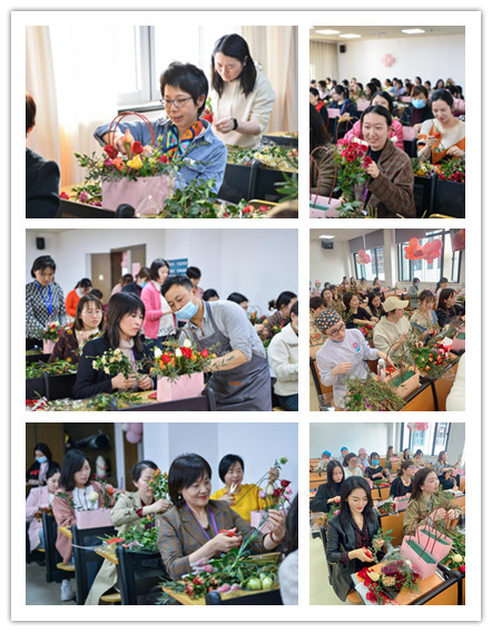 活动中,专业花艺老师为大家讲授了插花艺术的基本知识,介绍了每种鲜花的名称、寓意,重点讲解了插花的造型,现场演示了插花的技巧。看到老师完成的精美作品之后,大家更是兴致盎然、跃跃欲试。女同胞们边听边学边动手,发挥想象,以高涨的热情投入到插花创作中。在轻松愉快的氛围中,大家从取材、剪叶、构思开始,逐步完成了插花作品,或是高低错落,或是俯仰呼应,或是疏密聚散。看着通过自己双手制作成的插花作品,大家的脸上都洋溢着喜悦的笑容。有些女职工迫不及待地把活动照片传到微信上与亲友分享,有些则欣喜的坦言这是她人生第一次的插花经历,很有意义。
