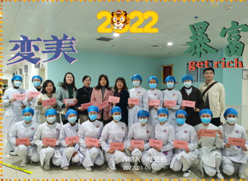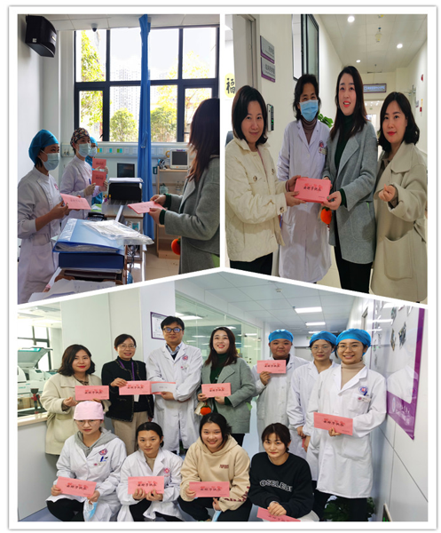 岳麓山院区分工会主席李霞携手护理办龙建华主任、经管委员万晨辉、女工委员高思维一起为每一个科室的女职工送上节日的慰问和祝福,并送上黛恩美美容卡。深得女职工喜欢,纷纷表示过年暴饮暴食、熬夜导致皮肤紊乱,高负荷的工作使女职工疲惫不堪,需要身心放松,才能更好的工作和生活。
