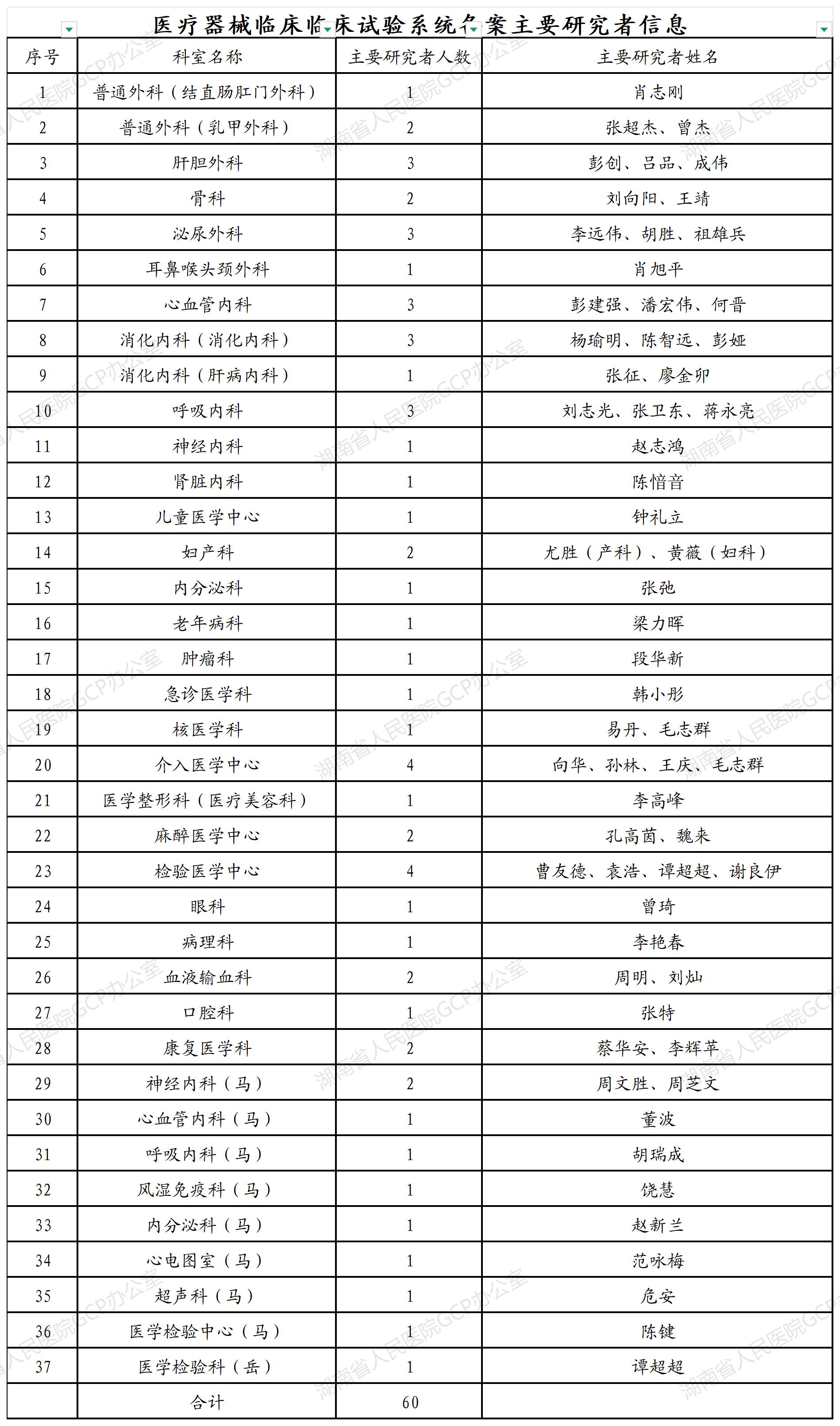 医疗器械临床临床试验系统备案主要研究者信息