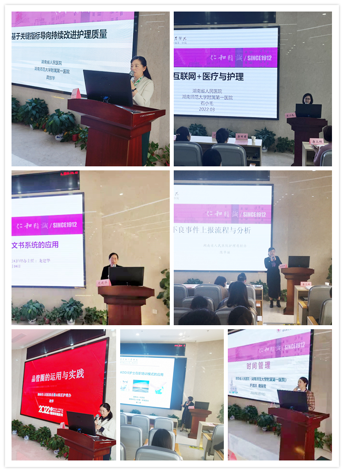 石小毛、陈华丽、龙建华、殷明媛、沈周敏、唐丽君、凌洋、唐三辉分别从《互联网+医疗与护理》《护理不良事件上报流程与分析》《移动护理文书的应用》《危重患者的护理风险防范》《时间管理》《疑难病例患者查房》《品管圈的运用与实践》《ADDIE护士在职培训模式的应用》及《进修护理管理相关制度》等方面为进修护士进行了精彩的授课,她们以案说法、循循善诱,培训现场气氛活跃,学员们也热情高涨,纷纷表达了自己的看法,主任们的精彩讲解赢得现场阵阵掌声。