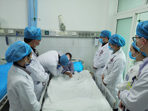 王宁主任带领团队查看贝贝术后伤口恢复情况