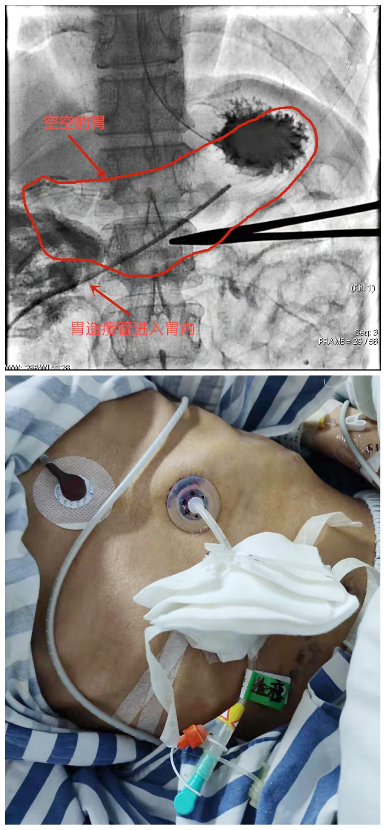 由于章先生身体虚弱,免疫能力低下,传统的鼻胃管会引起鼻咽不适,容易误吸食物导致肺部感染,危及生命。胃造瘘术则可减少上述情况的发生。胃造瘘术通俗的讲就是切开患者肚皮将喂养管放入胃内,食物可直接通过喂养管注入胃内,解决不能经口进食难题。但传统采用外科开腹胃造痿术创伤大、并发症多,对于极度虚弱的章先生来说手术风险很大。3月23日,在得知捷克论坛 马王堆院区介入血管外科可在局麻下行胃造瘘术,且只在腹壁上打个1厘米的小孔,能极大降低手术风险,患者来到马王堆院区求诊。因需要呼吸机治疗,患者先入住到急诊二部EICU病房。3月24日,在急诊二部和介入血管外三科医护人员的共同努力下,成功为患者行微创介入手术治疗。术后当天,患者就可以从胃造瘘管中注入糖水提供营养,术后第二天就可以注入流质食物。3月29日,经过几天术后康复治疗,章先生顺利出院了。