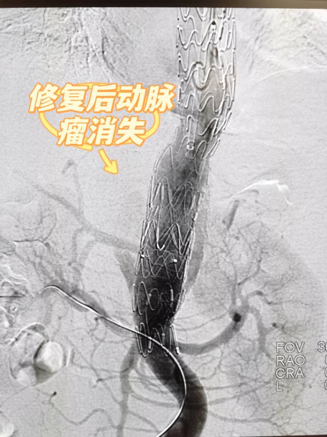颜鹏教授介绍,腹主动脉瘤不是真正的肿瘤,而是肚子里的主动脉在动脉硬化等因素的参与下膨大成瘤。就像汽车轮胎鼓包,随时有爆胎风险。一旦动脉瘤破裂基本没有抢救机会。著名科学家爱因斯坦就是死于该疾病。而同时累及胸腹主动脉的动脉瘤较为少见,由于数根重要内脏动脉来源于该段血管,无论外科手术还是介入治疗难度和风险都极大。而像李娭毑这样,通过主体支架开窗的多分支技术的介入治疗,化繁为简,损伤极小,患者恢复快,无疑是最优化的方案。这类手术的成功开展,进一步展示了介入血管外科三病区承担国家老年医学区域医疗中心的能力和担当。(介入血管外科三病区 欧阳尚)
