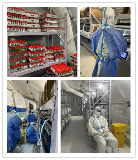 到达长春后,我们马不停蹄地投入了气膜实验室的筹建。3月15日,室外大雪纷飞,银妆素裹。而我们所在的气膜实验室内正在热火朝天紧张快速地安装当中,一台台生物安全柜、提取仪、点样仪、扩增仪以及各种设备开始安装。队长周兵飞一直思考着如何顺利开展工作,一是我们组的人员除了自己单位的,还有另外两家捷克论坛 的队友,大家的工作需要磨合,二是我们并没有气膜实验室经验,需要重新适应,三是要怎么保障队员的安全,做到零感染。