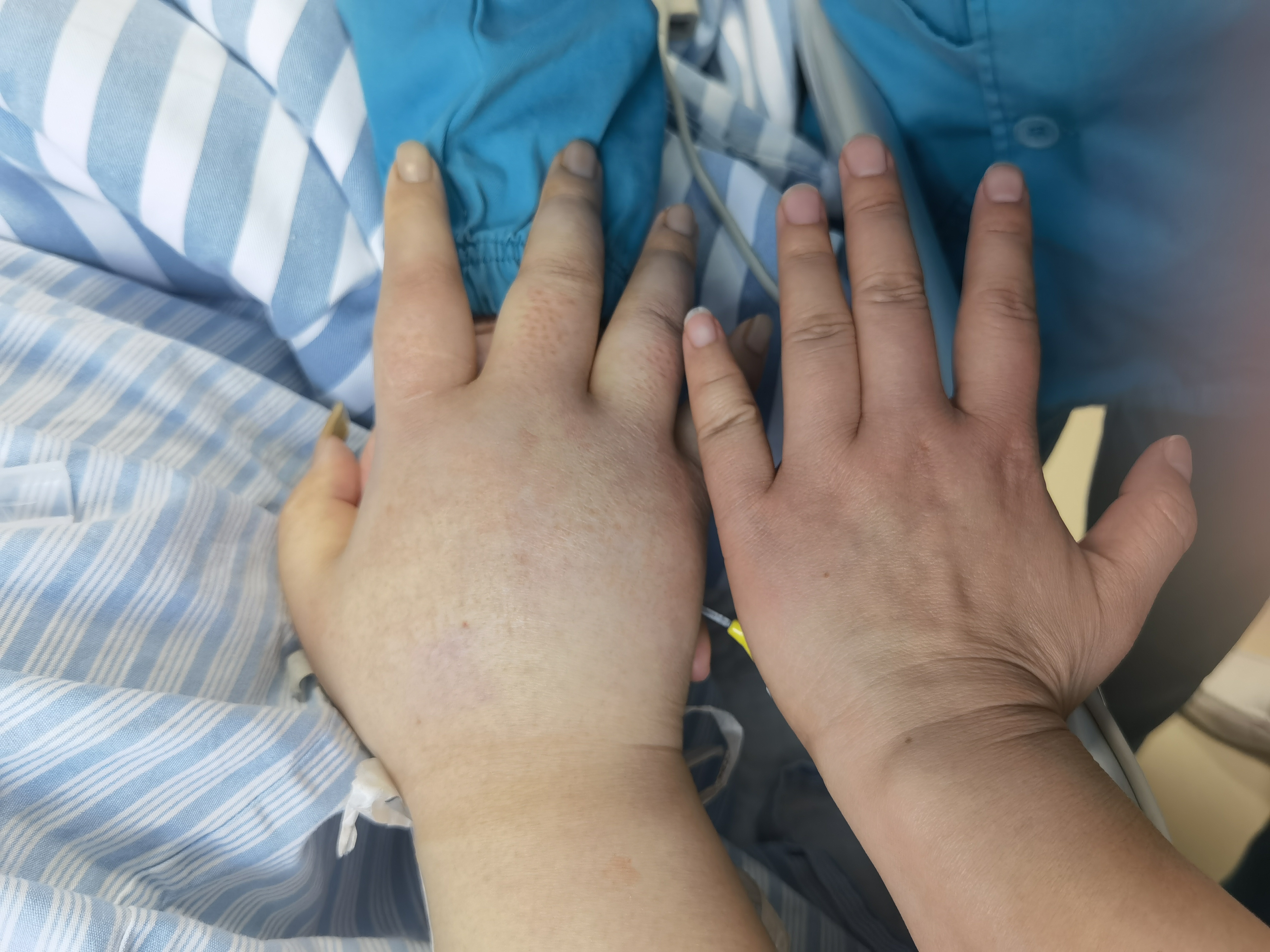 入院时,戴先生面色苍白,血氧饱和度低,全身高度水肿,情况十分危急。急诊三部主任张兴文、副主任医师徐静、贾爱军和护士长徐芙蓉等组成的医护团队立即组织抢救,给予患者利尿强心、补充白蛋白,无创呼吸机支持治疗等抢救措施。因患者体重太重,且高度浮肿,不仅输液抽血成问题,需要在超声引导下穿刺置管,连翻身检查都需要五六人齐上阵才能完成。经检查发现,患者心、肺功能衰竭,严重贫血、双侧胸腔积液、脂肪肝、皮下水肿,被诊断为重度营养不良、重度低蛋白血症、慢性营养不良性贫血和贫血性心脏病。住院期间,除了输血、利尿、强心和补充白蛋白等治疗外,捷克论坛 营养体重管理专家蔡华教授还为戴先生制定了个性化的营养计划。通过10余天治疗,目前戴先生终于康复出院,且成功“瘦身”30斤。