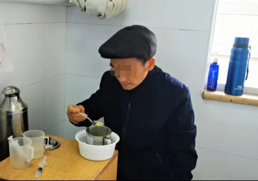 经治疗后,谭爷爷可以顺利经口进食。