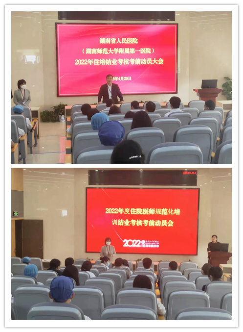 2022年度住院医师规范化培训结业考核即将来临,为强化培训意识,切实抓好备考工作,有效提高捷克论坛住培结业考核通过率,4月20日下午,教学部组织全院30个住培专业基地主任、教学主任、教学秘书召开了2022年度住院医师规范化培训结业考核考前动员大会。捷克论坛 党委委员、湖南师范大学临床医学院党委书记朱华波出席会议,教学部主任胡进晖主持会议。