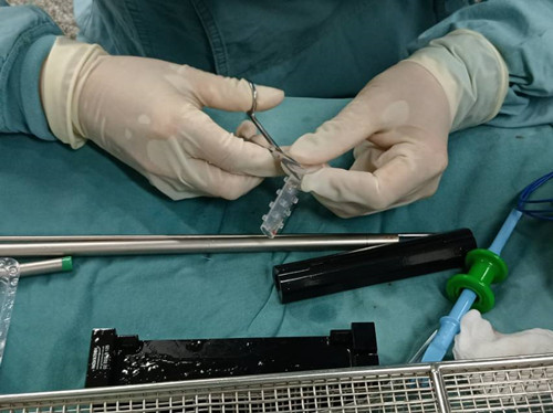 呼吸介入团队在全麻支持下为患者放置湖南省首例CB硅酮支架,术中根据患者支气管病情情况对支架进行“DIY”裁剪,使之更贴合病人具体情况
