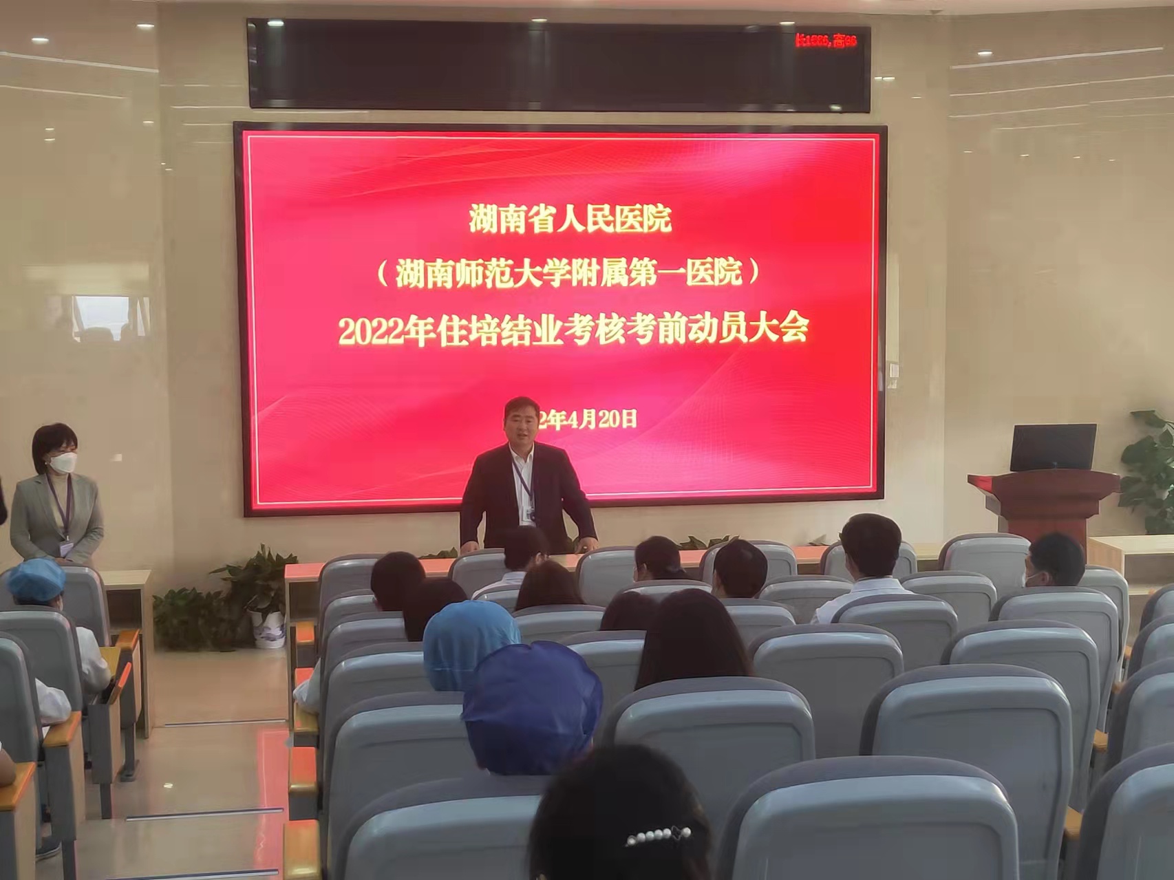 2022年度住院医师规范化培训结业考核即将来临,为强化培训意识,切实抓好备考工作,有效提高捷克论坛住培结业考核通过率,4月20日下午,教学部组织全院30个住培专业基地主任、教学主任、教学秘书召开了2022年度住院医师规范化培训结业考核考前动员大会。捷克论坛 党委委员、湖南师范大学临床医学院党委书记朱华波出席会议,教学部主任胡进晖主持会议。