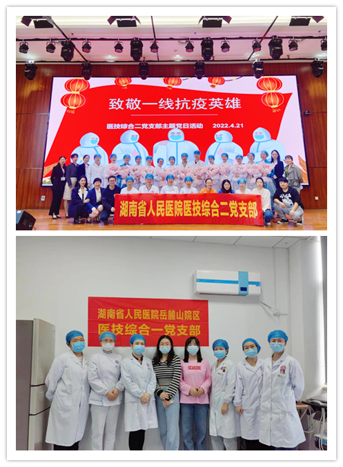 岳麓山总支对外援抗疫人员予以免费超声检查,党总支书记和职能部门负责人为抗疫医务人员送上了鲜花与水果。介入血管外科二党支部为一线抗疫人员赠送生活物品。心内科三党支部开展“一线抗疫故事分享”活动 ,一同参观杨立三故居,七名抗疫人员分享自己的抗疫故事,感动之余更加坚定初心使命。
