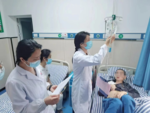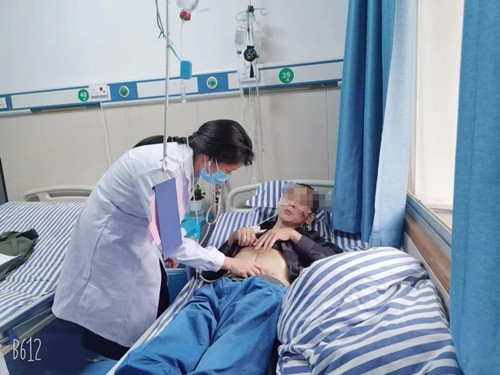 看到求助信息的蔡华,跟患者取得联系后,了解了其病情,和肿瘤科范莎莎博士微信沟通后,于4月28日一起前往该患者治疗的社区医疗中心,仔细查看体查病人病情,询问患者膳食情况后,患者因幽门水肿加之紧张担心,一直未经口进食,营养筛查评分4分,bmi 小于18kg/平方米,鼻肠管肠内营养液不耐受,每天4-5次腹泻,社区医生予以停肠内营养,持续肠外营养,根据营养相关检验报告,低蛋白血症,重度贫血,肌肉减少症,能量—蛋白质不足,水电解质紊乱,为了让患者改善营养尽早实施下一步抗肿瘤治疗,蔡华跟社区医生、范莎莎博士一起就患者的营养方案进行了探讨,制定了适合患者的肠内营养方案,并且建议优化了肠外营养,肿瘤科范博士针对患者癌性疼痛给予了止痛治疗。