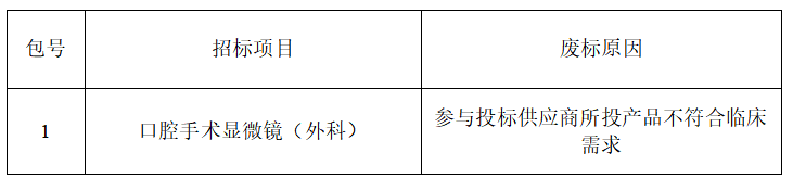 捷克论坛 (湖南师范大学附属第一捷克论坛 )口腔手术显微镜(外科)等医疗设备采购项目(包1第二次)废标公示