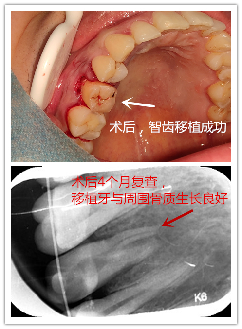 智齿往往没有咬合功能,是口腔内牙齿最佳的“替补队员”。而自体牙移植技术将智齿用作修复缺牙的天然的宝贵资源,实现了“变废为宝”。张特主任表示,移植成功的牙齿,能达到牙周膜愈合,患者最终获得的还是一颗真牙,保存了正常的牙周组织和牙本体感受,这是其他现有的修复方式都无法达到的。当前,自体牙移植技术已经发展成熟,通过微创的拔牙和受植窝洞预备,以及早期根管治疗等技术优化,目前移植牙的成功率已经很高。