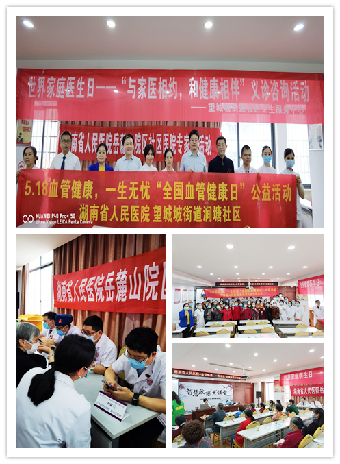 活动由常务副院长向华、岳麓山院区执行院长刘宇琛牵头,医务办和护理办协调联系,介入血管外科(卒中中心)联合心血管内科(胸痛中心)团队开展健康知识讲座。同时,介入血管外四科科主任向斌、任翔副主任医师、谷鹏主治医师、心内六科邓大庆副主任医师和望城坡街道社区卫生服务中心专家团队为社区居民测量血压、脉搏、呼吸、血糖进行义诊。