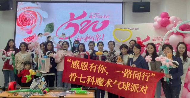 为了丰富科室文化生活,营造和谐工作生活氛围,锻炼护理人员创新创造思维,提升专注力及审美能力,体验手工制作的乐趣,岳麓山分工会骨七科工会小组于5月20日开展“感恩有你,一路同行——“花花世界”魔术气球派对”活动。活动邀请到岳麓山院区护理办主任龙建华女士、岳麓山院区护理办副主任凌洋女士、岳麓山院区各科护士长以及岳麓山院区分工会主席李霞、团支部书记肖晓双均参与其中,共吸引近30名职工参加。