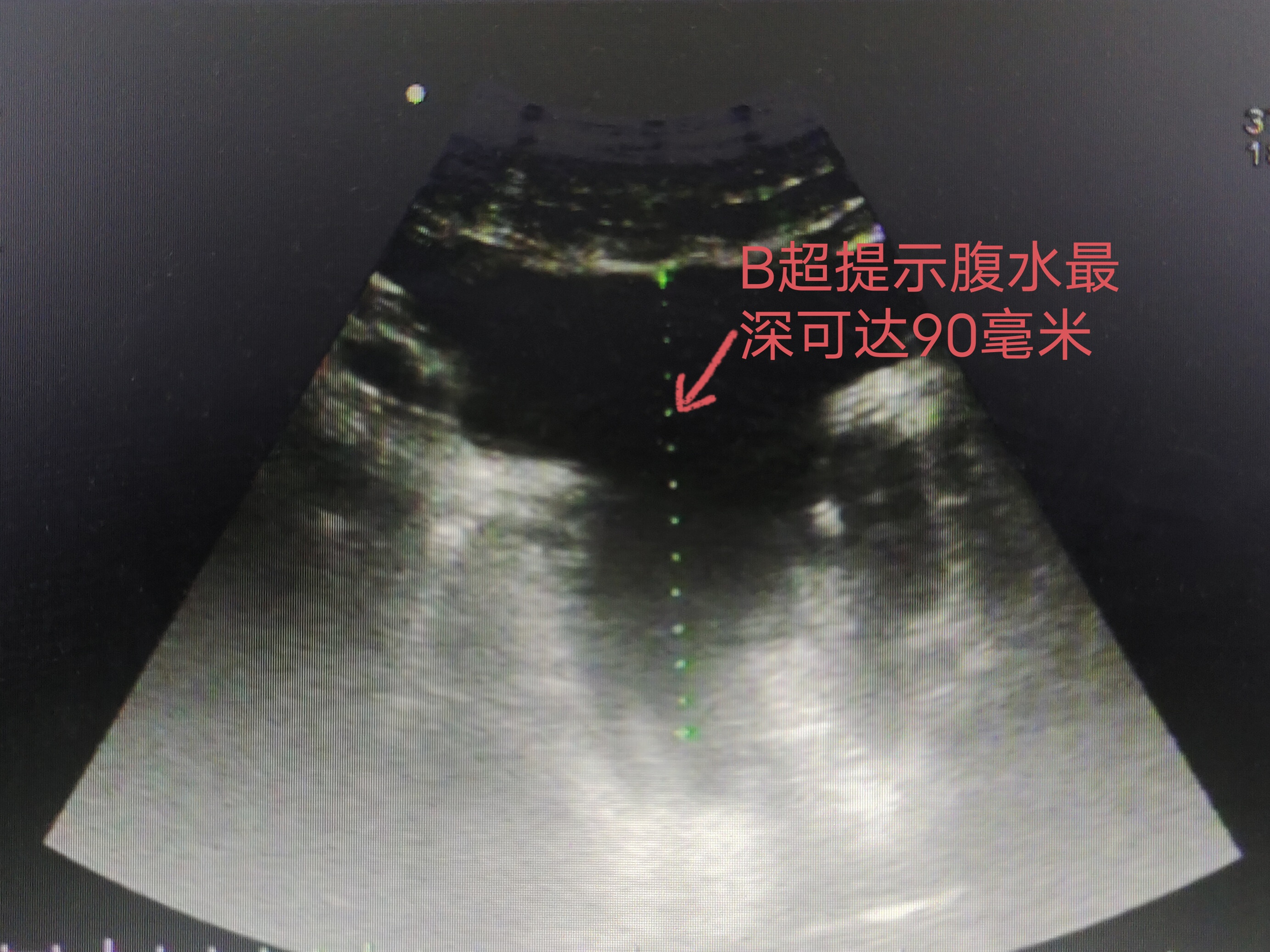 B超提示腹水最深可达90mm