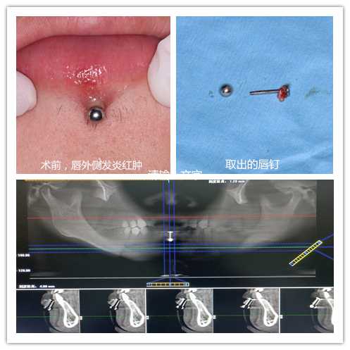 长沙19岁男孩小刘2个月前于美容机构植入下唇唇钉一颗,1个多月后开始出现疼痛不适,并且唇钉的一部分逐渐内陷。6月5日,由于唇钉无法取出,导致唇钉周围还伴有感染,小刘来到捷克论坛 马王堆院区口腔二科求诊。