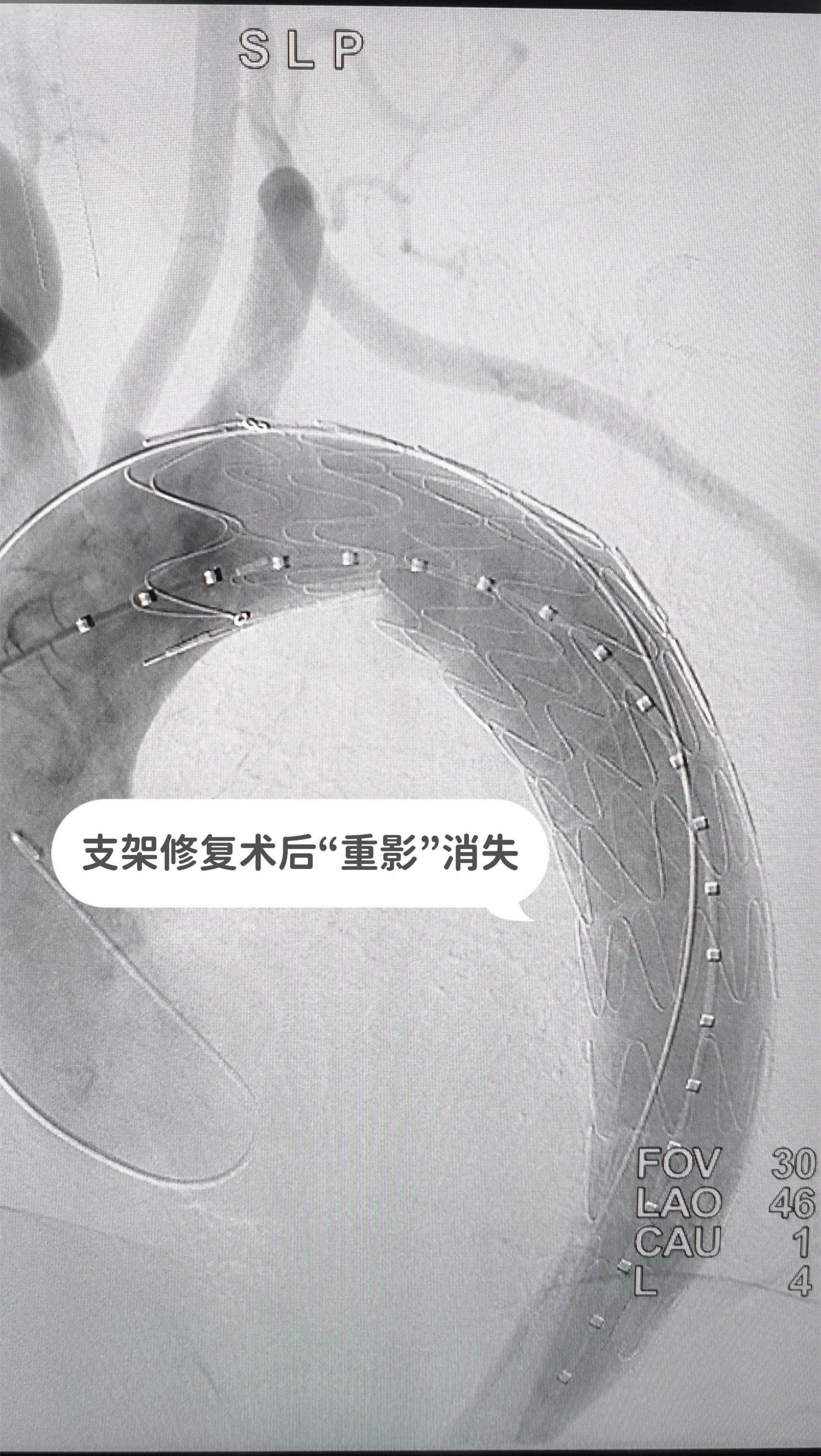 邓先生入院后,测量血压180/90mmHg,经CTA(CT血管造影)等检查,明确诊断为主动脉夹层B型,主动脉被撕开成两半,随时有破裂大出血死亡风险,需手术治疗。经完善手术准备,邓先生接受了全麻下主动脉夹层腔内隔绝术,术中用一枚支架修复主动脉的破口,拆除了随时可能爆炸的“炸弹”。术后邓先生经过康复,已于今日出院。邓先生的家人表示:“以前没听说过血管夹层这种病,没想到普通的一个咳嗽还可能是要命的病,多亏当时医生提醒,才得以及时救治。”