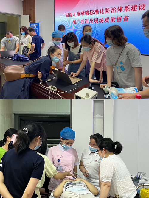 2022年6月18-19日,为响应湖南省人民政府的号召,推进健康湖南建设,加强儿科医疗卫生服务改革与发展,提升湖南省基层医疗机构儿科诊治能力,湖南省医学会儿科学专业委员会呼吸学组主任委员钟礼立教授带领捷克论坛 儿童呼吸治疗团队黄寒教授、杨图宏护士长及技师郭纯赴岳阳针对儿童哮喘标准化防治体系建设进行推广及质量监督。