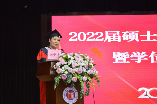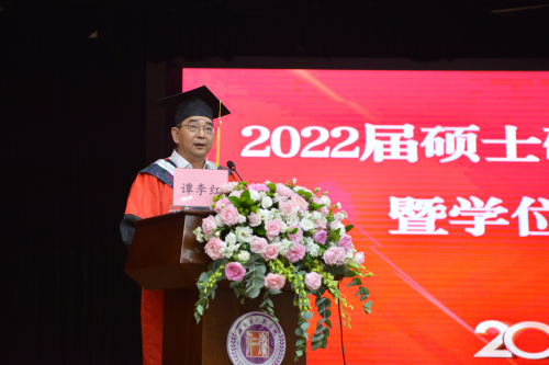 会前,同学们用青春洋溢的歌声唤醒了众多美好的回忆,氛围满满。伴随着雄壮的国歌,毕业典礼暨学位授予仪式正式开始。“三年的求学生涯,大家苦练临床本领、创新科研项目、磨砺个人意志,今天,你就是自己的英雄!”谭李红院长对毕业生们表示衷心的祝贺,并对不辞辛劳的老师们致以最崇高的敬意,并以“争做有心人”深情寄语各位毕业生,希望各位同学在今后的学习或工作中,永葆“仁心”、永怀“责任心”、做事“专心”、办事“细心”、保持“敬畏心”。