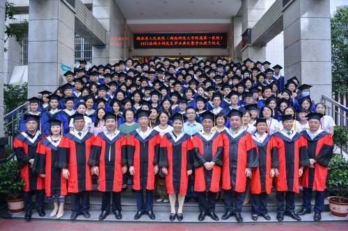 学位授予仪式上,谢资清副校长、唐建明书记和临床医学评定分委员会成员、导师代表为149名2022届硕士毕业生一一颁发毕业证书,拨穗正冠,合影留恋。